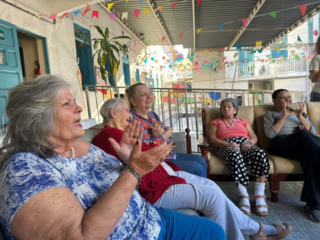 Como sempre, muito animada e com participação intensa das vovós. Elas amam cantar!
