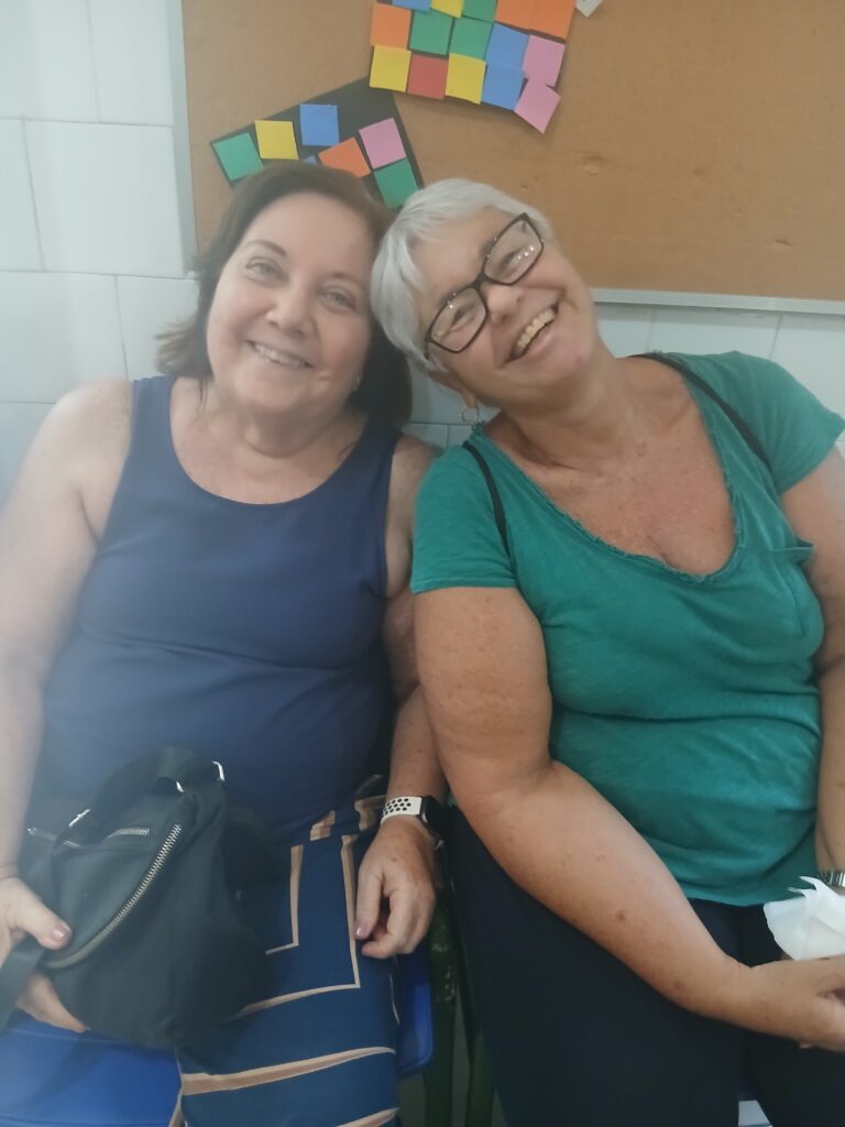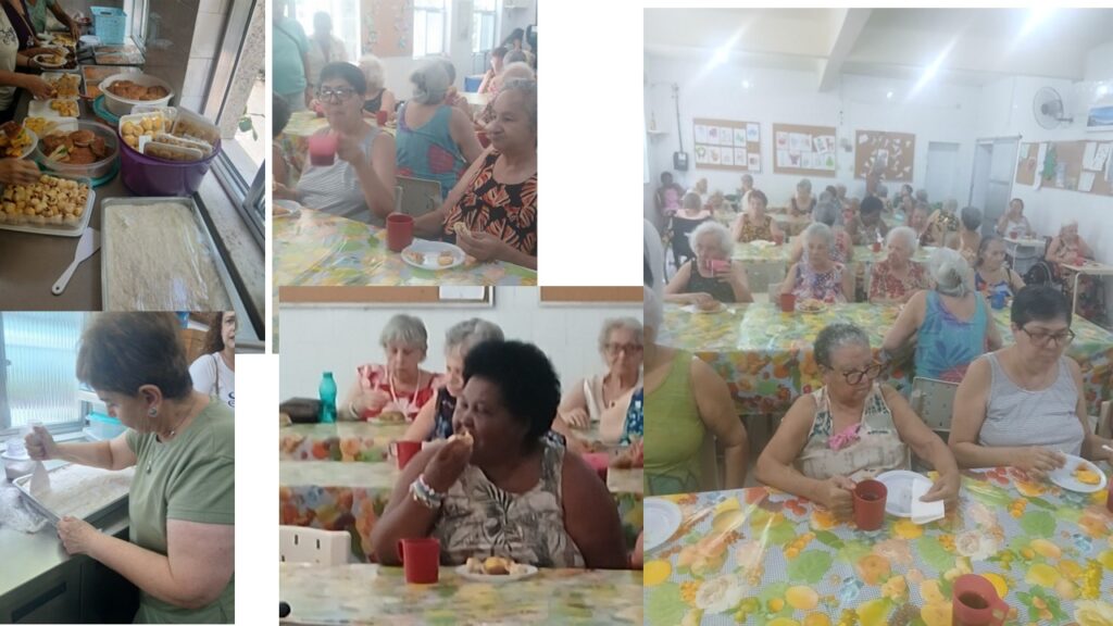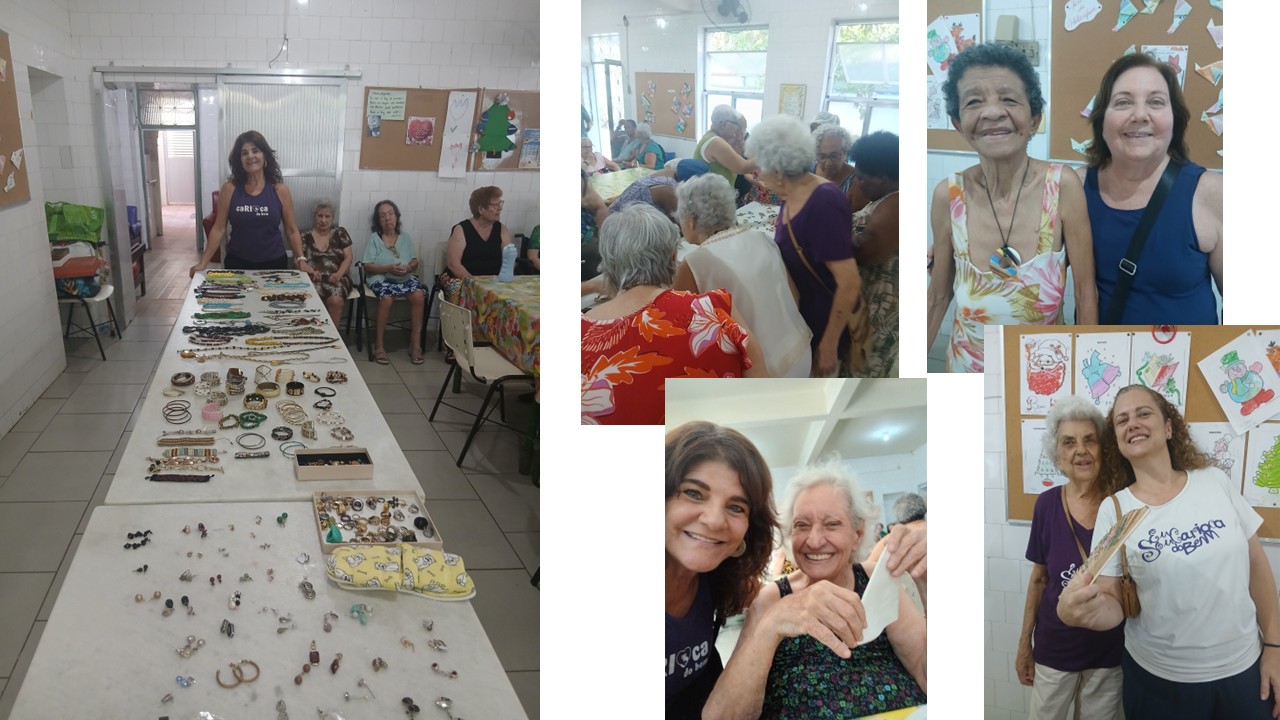 Para as vovós teve lanche, música e bastante bijuteria.
